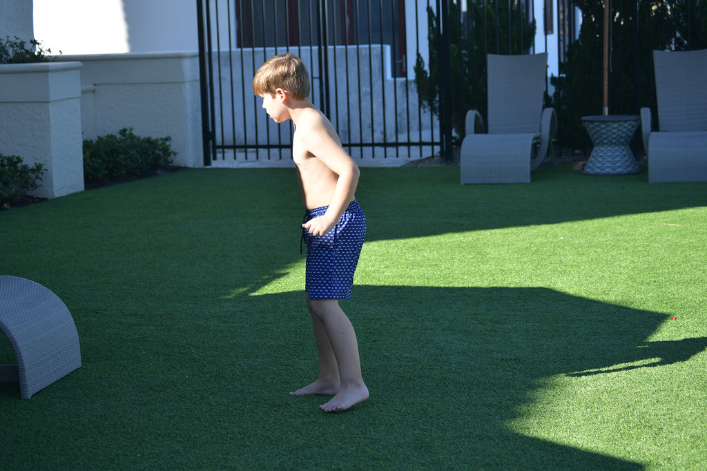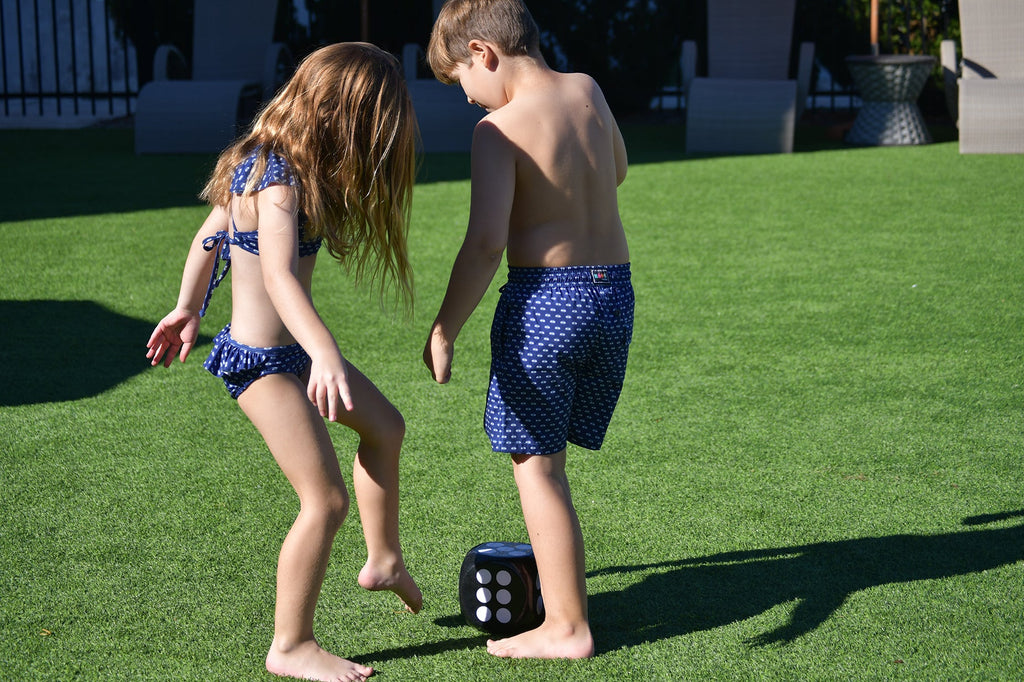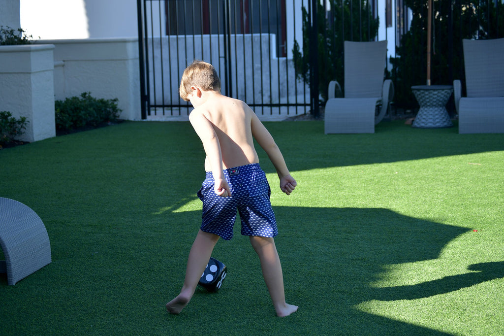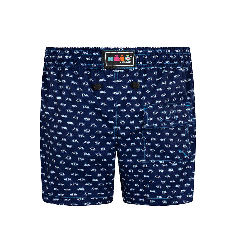 The Eyes Spades Kids' Swim Trunks are fun, perfectly fitted, and designed for comfort and protection. Made with smart fabric featuring UPF 50+ sun protection, these trunks include an elastic waistband, adjustable drawstring, mesh lining, side pockets, and a contrasting back pocket with an adjustable cord. They dry quickly, have rear ventilation eyelets, and are crafted from 100% recycled polyester.