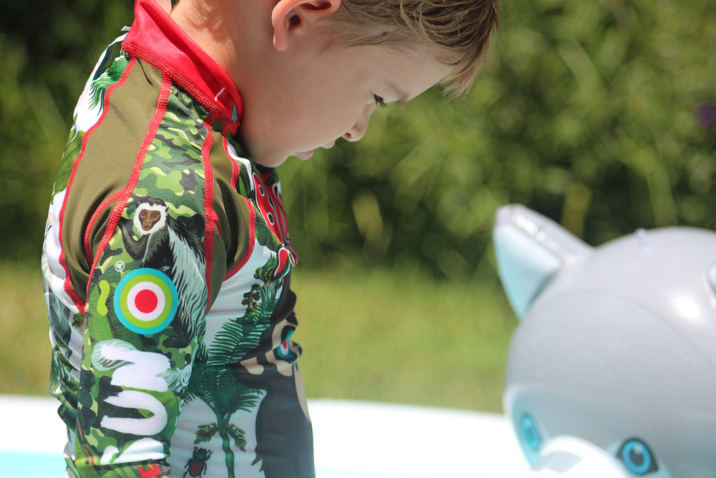 Krio +Color  Designs Beautiful Colorful Swimsuit and Sun Protection clothing with UPF50+ to Cover Children All Day Long.