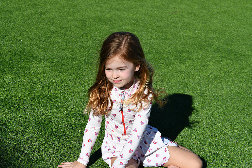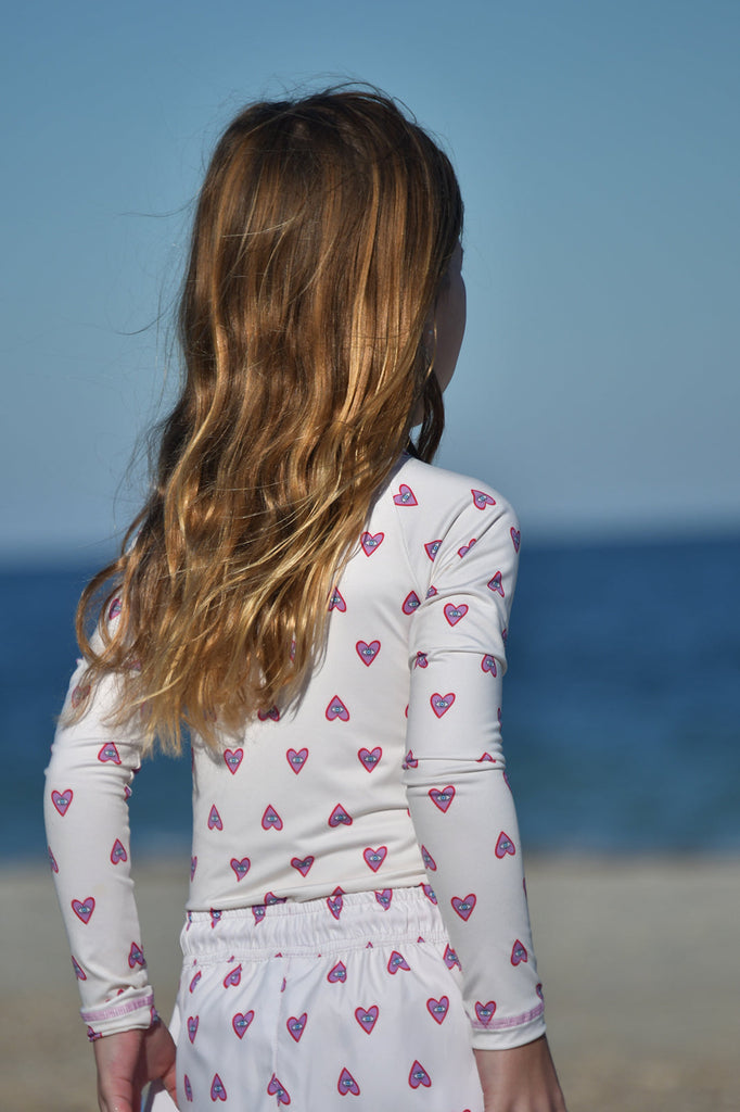 Our "Hearts" girl's shorts are ideal for pairing with swimsuits and completing the look.